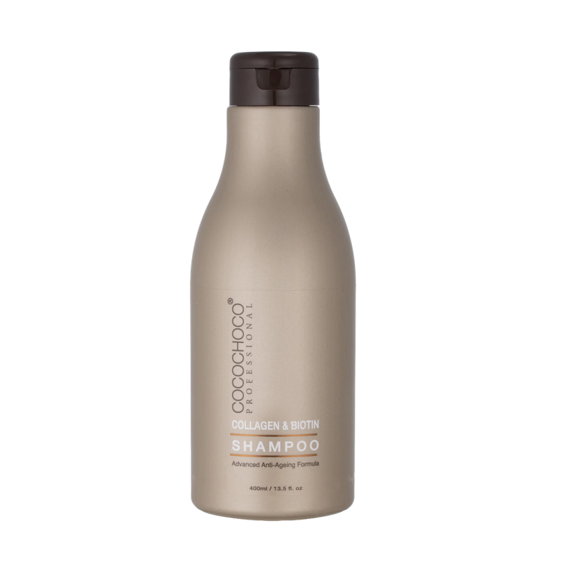 Szampon COCOCHOCO Collagen & Biotin wzbogacony jest bogatą w przeciwutleniacze zieloną herbatą, kojącym aloesem i kojącym rumiankiem. Odkryj pełniejsze, zdrowsze i bardziej promienne włosy po każdym myciu.